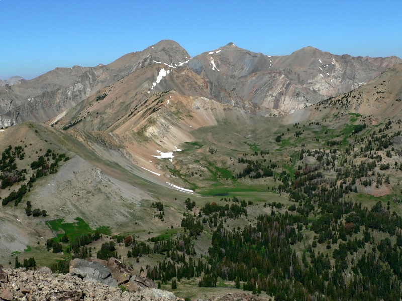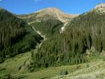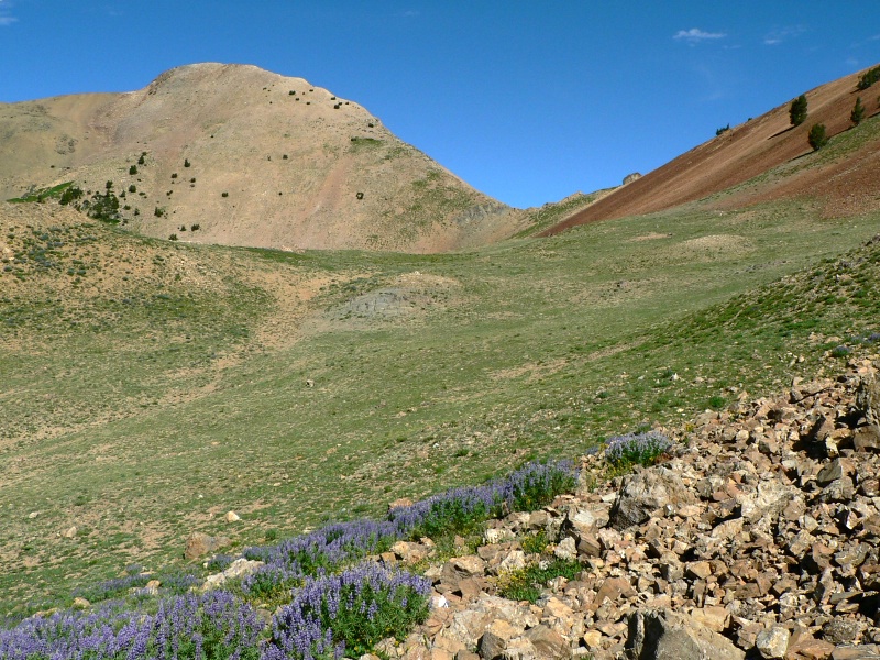 | Picture of the upper basin. The trail goes over the saddle just to the right of the picture. |