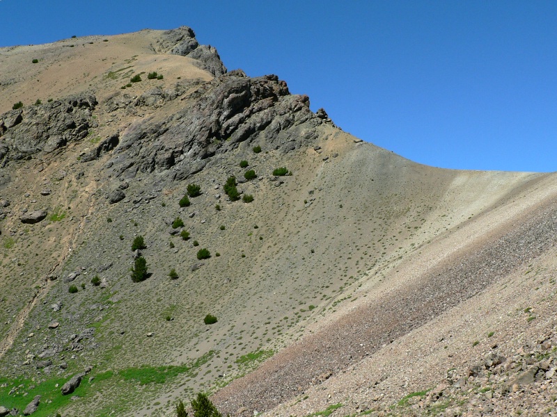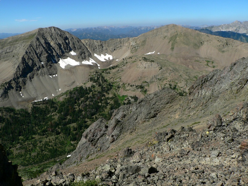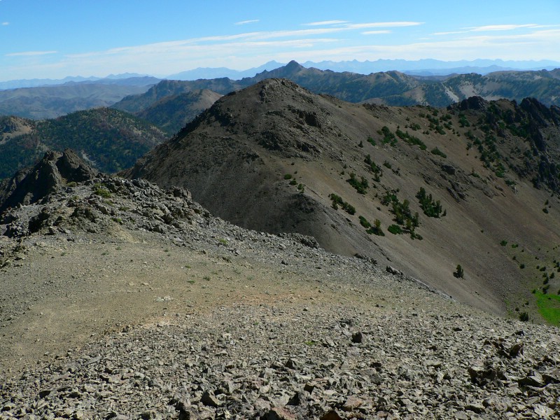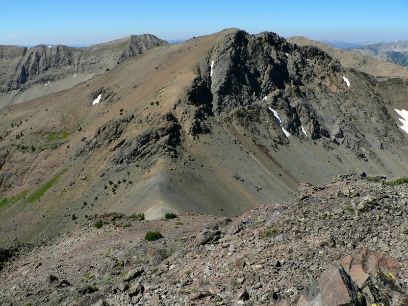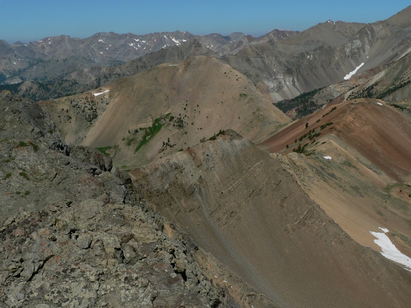 | The ridge to 10598. It starts at the reddish hill and works its way to the center of the photo. |