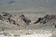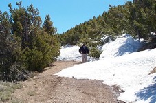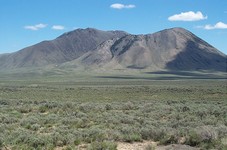 Make your way to the Big Southern Butte landing strip, which is north of the peak. We approached from the north, which is INEEL land. It was unclear whether we were supposed to be on the roads, since some signs implied restricted access. After passing by the "Experimental Breeder Reactor #1" and a nuclear waste processing facility (complete with a huge concrete building and radiation signs), we made it to the open range. It is interesting seeing the buildings, warning signs, etc..., but it may be easier to come in a little further west from Arco. Once at the landing strip, follow the road heading south on an alluvial fan coming off of the butte. We were forced to walk the road to the summit from about 5,800 feet, where a gate blocks access during the winter and spring.