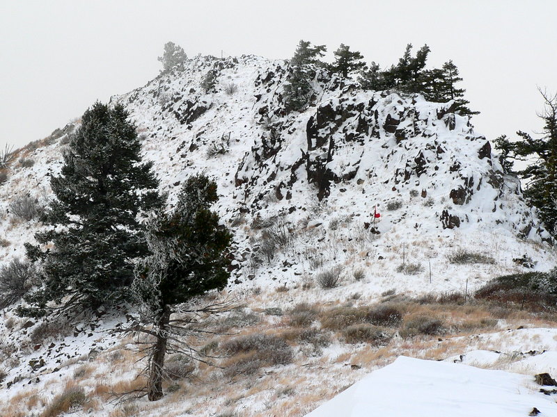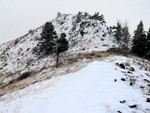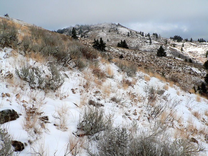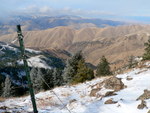Chinaman's Hat was mostly out of the fog layer, but windy and cold. There was even a bit of tricky climbing (20 feet of it or so) on its snow covered rocks. On top, we could see McChord Butte to the west, parts of Brownlee Reservoir, and even the vehicle parked at the gravel pit. Nothing too spectacular, but nice to get out and stretch the legs and catch up with an old friend.