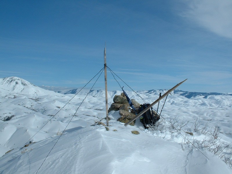 | Wooden structure and cairn on top. |