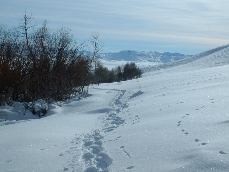 Breaking trail along the creek. |